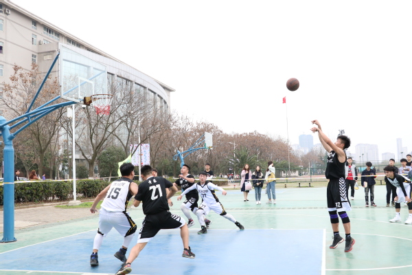 踏“七彩”祥云,夺“七彩”桂冠。3月19日中午12:30,BB贝博艾弗森官方网站电子商务学院对决经济与商务外语学院、文法学院对决管理学院两场篮球“厮杀”在体育馆运动中心旁的篮球场精彩上演,正式拉开了第十七届“七彩”文化艺术节篮球赛的帷幕。
