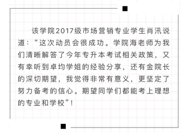 本次专升本成绩的取得,得益于广大考生、老师、学校相关部门多方面的共同努力,是学校不断深化教学改革、强化教学管理、加强学风建设所取得的良好成果。