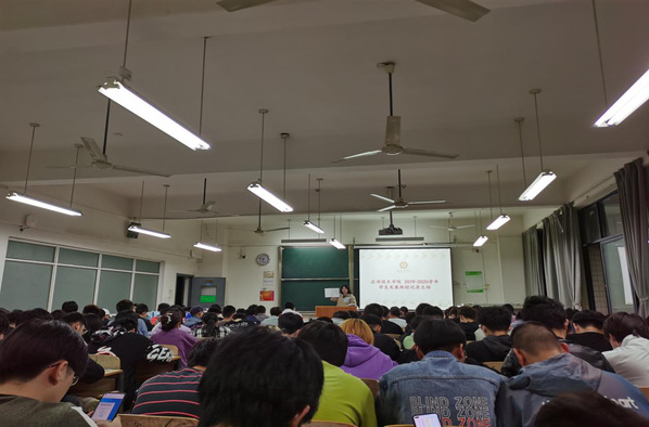 (图1为辅导员柳娜讲解2019级大一学年情况)