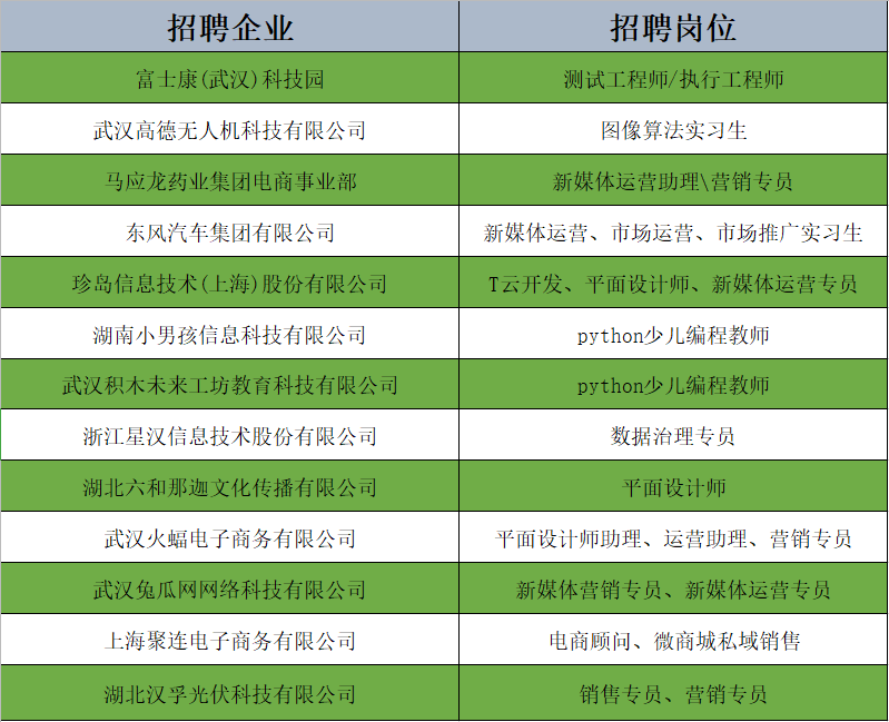 招聘企业及岗位