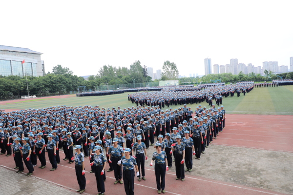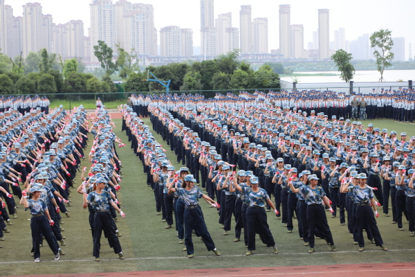 谁说“女子不如男”?穆桂英、花木兰、张伟丽、张桂梅、陈薇等等,都是巾帼英雄。过去的十四天里,在广阔的大操场上与铮铮铁骨的男子汉不同,她们是钢铁营盘里的朵朵姐妹花,她们一身戎装,豪情万丈。她们就是由1300多名同学组成的“女子花样队”。