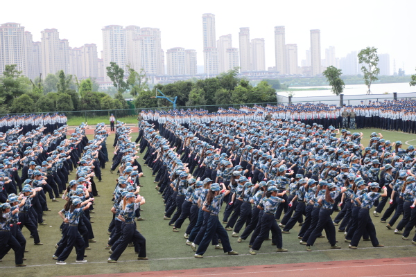 “自古男儿多壮志。”由400多名男生组成了男子方队,他们展示了军体拳、擒敌拳等。随着教官的一声令下,男子方队排山倒海,阳刚之气瞬间燃爆整个校园,这就是青春活力的绽放。