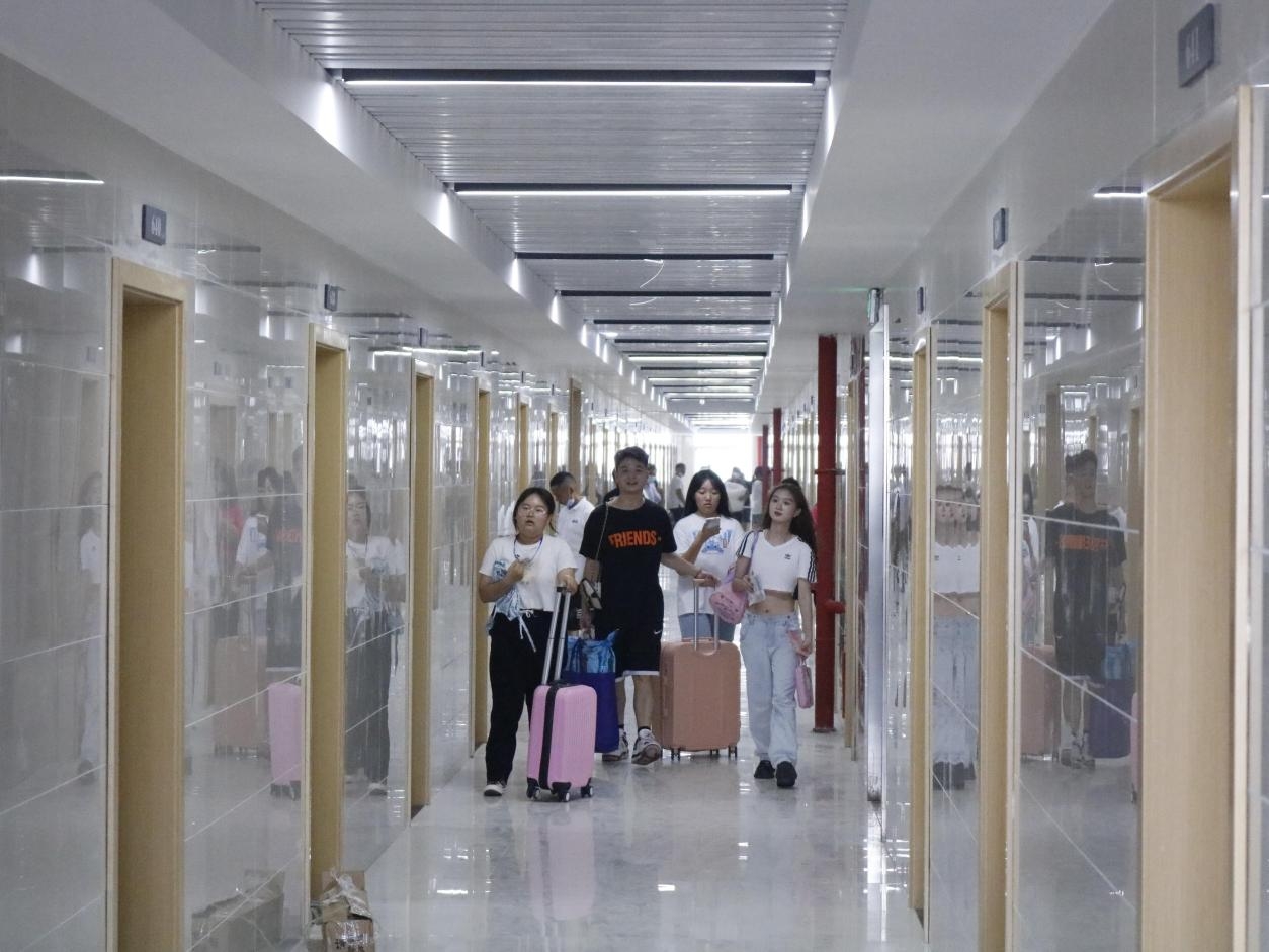 新生从五湖四海相聚在BB贝博艾弗森官方网站,就像那首歌写道“一定是特别的缘分,才可以一路走来变成了一家人”。“我是来自新疆的,就读的专业是电商。来到这个大学第一感觉是大、环境优美,学长、学姐比较热情,志愿者都非常细心,让我在最短的时间内布置好一切。希望能够尽快的熟悉校园环境,尽快融入角色。非常感谢这个学校。”新生陈同学心情激动万分,在接受记者团采访时如是说道。现场有新生安顿好的,又返回会场,给帮助过他们的学长送花、送家乡特产、送水、送零食等等,无不体现出校园的和谐与美好。