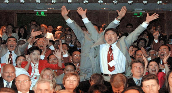 1991年12月4日,中国在洛桑向国际奥运会正式递交了承办2000年奥运会申请书。从1991年下半年开始,我们正式启动了2000年奥运会的申办工作。申办委员会正式成立后,打出的口号是“开放的中国盼奥运”。