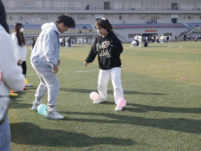 每个人的脚上绑上气球,哨音响后,一方面需去踩爆敌队的气球,同时也需要保持自己的气球不被踩爆。当然你也可以与另一组队伍达成同盟,这考验了队友之间的反应能力和默契能力。(注意气球不要吹太大)