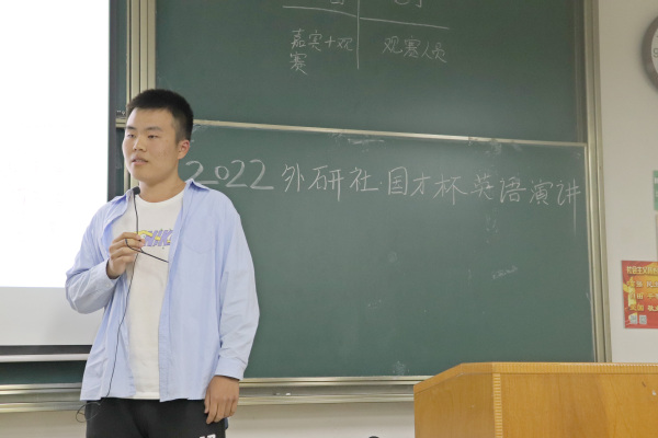 (通讯员:蔡旭)5月18日,2022“外研社·国才杯”全国英语演讲大赛校赛在综合楼602举行。经过前期的选拨,共有14位选手晋级校决赛,最终徐皓和陈俊宇同学获一等奖,并代表学校参加湖北省复赛。本次大赛由AT英语协会举办。蔡旭老师、王丹丹老师、向长水老师、向锦媛老师等五位老师担任本次决赛的评委。