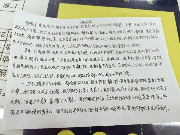 观看直播过程中大家保持安静,认真观看学习,及时做好笔记,在直播结束后,分团委书记梁爽老师向大家分享了她记录的习近平主席对共青团成员寄语——“要做刻苦学习、锐意创新的模范;要做敢于斗争、善于斗争的模范;要做艰苦奋斗、无私奉献的模范;要做崇德向善、严守纪律的模范”。同时还分享了“心有所畏、言有所戒、行有所止”这一句话,希望广大青年能在今后的学习和工作中,树立规则意识,无论是何种身份,去做有责任、有担当的模范代表,认真肩负起团员责任和义务,树立远大理想,争做“不负党的殷切期待,不负祖国和人民的殷切期待”的新时代新青年。