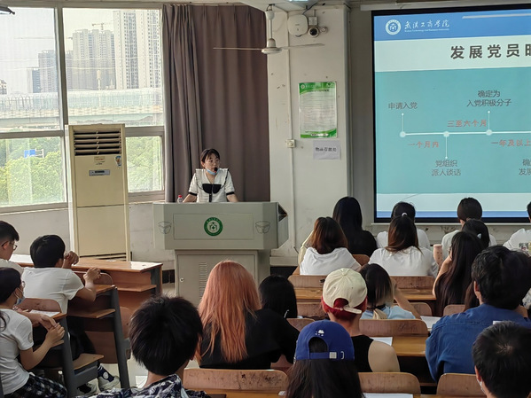 田真老师首先就发展党员时间让同学了解从申请入党到成为正式党员所需的时间。之后田真老师详细介绍了从申请入党,到确定入党积极分子的确定和培养教育,再到发展对象的确定和考察,预备党员的接收,最后到预备党员的教育考察和转正这五个阶段所必须经历的重要过程共计25个。