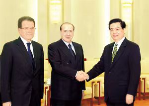 图为胡锦涛会见意大利总理贝卢斯科尼