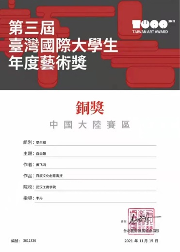 (通讯员:徐亚玲)2021年12月18日,BB贝博艾弗森官方网站应用技术学院创新实验班的学生喜获佳绩。在第三届台湾国际大学生年度艺术大赛中获得2枚银奖和7枚铜奖。第三届台湾国际大学生年度艺术大奖赛主要面对中国台湾、中国大陆、香港澳门及新加坡地区的国际性大学生设计大赛,旨在推动中华传统文化的创新发展。