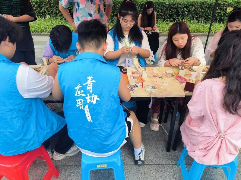 师生们的热情如同夏日的阳光,将广场装点得热闹非凡。五彩绳的编制区吸引了众多师生的目光,一根根彩绳在巧手的编织下,变成了寓意吉祥的手链,大家纷纷佩戴在手腕上,希望带来好运。