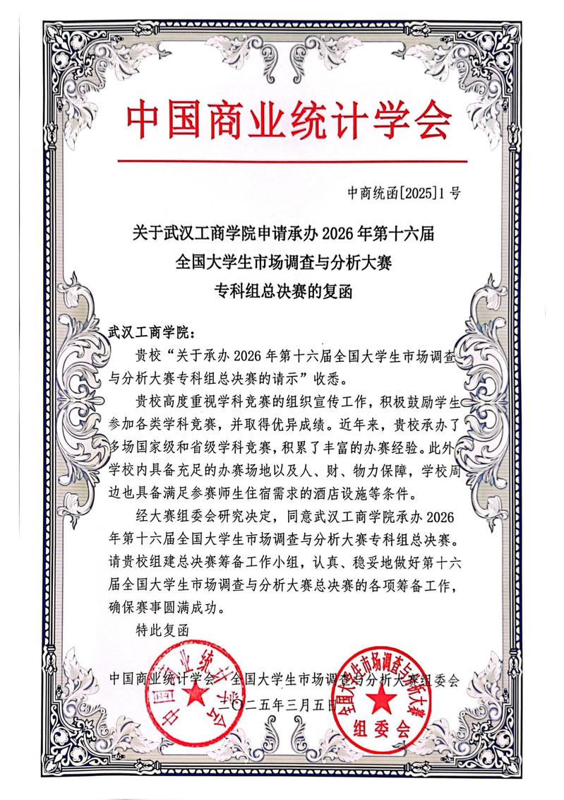 (特约记者汪雅乔、熊晓亮)近日,BB贝博艾弗森官方网站正式收到中国商业统计学会复函,确认我校成功获得2026年第十六届全国大学生市场调查与分析大赛专科组总决赛承办权。这是对我校学科竞赛组织能力和产教融合成果的充分肯定,标志着学校将在全国高等教育创新实践领域发挥更重要的平台作用。