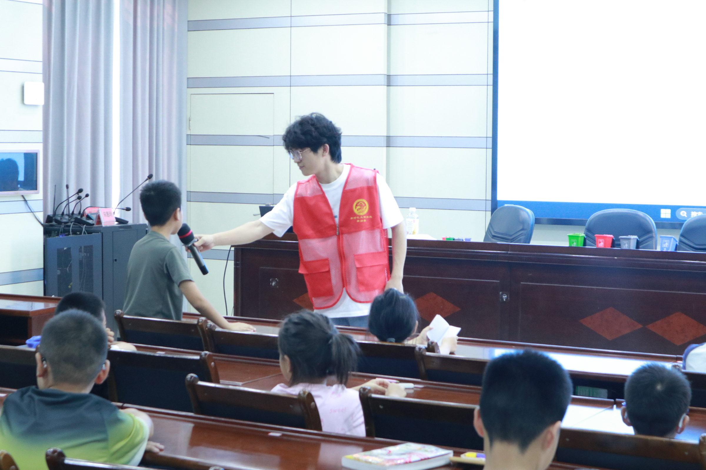 下午,由志愿者赵镆涵组织的环境卫生保护宣讲中,小朋友们听得格外认真,听到提问便立刻举手,争相分享自己知道的环保小知识。志愿者陈元豪主讲的道德与法治课上,他用身边的例子生动形象地讲解文明与不文明的现象,孩子们你一言我一语地讨论,对“文明” 有了更具体的理解。