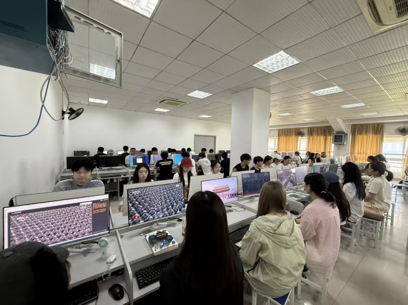 图为24计应Z7于综合楼606教室观看阅兵活动