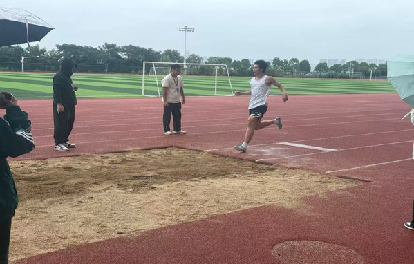 助跑道上,同学们目光坚定,从加速到起跳,一气呵成。有的身轻如燕,在空中走出一道优雅的弧线;有的力量十足,踏跳瞬间沙土飞扬,气势如虹。